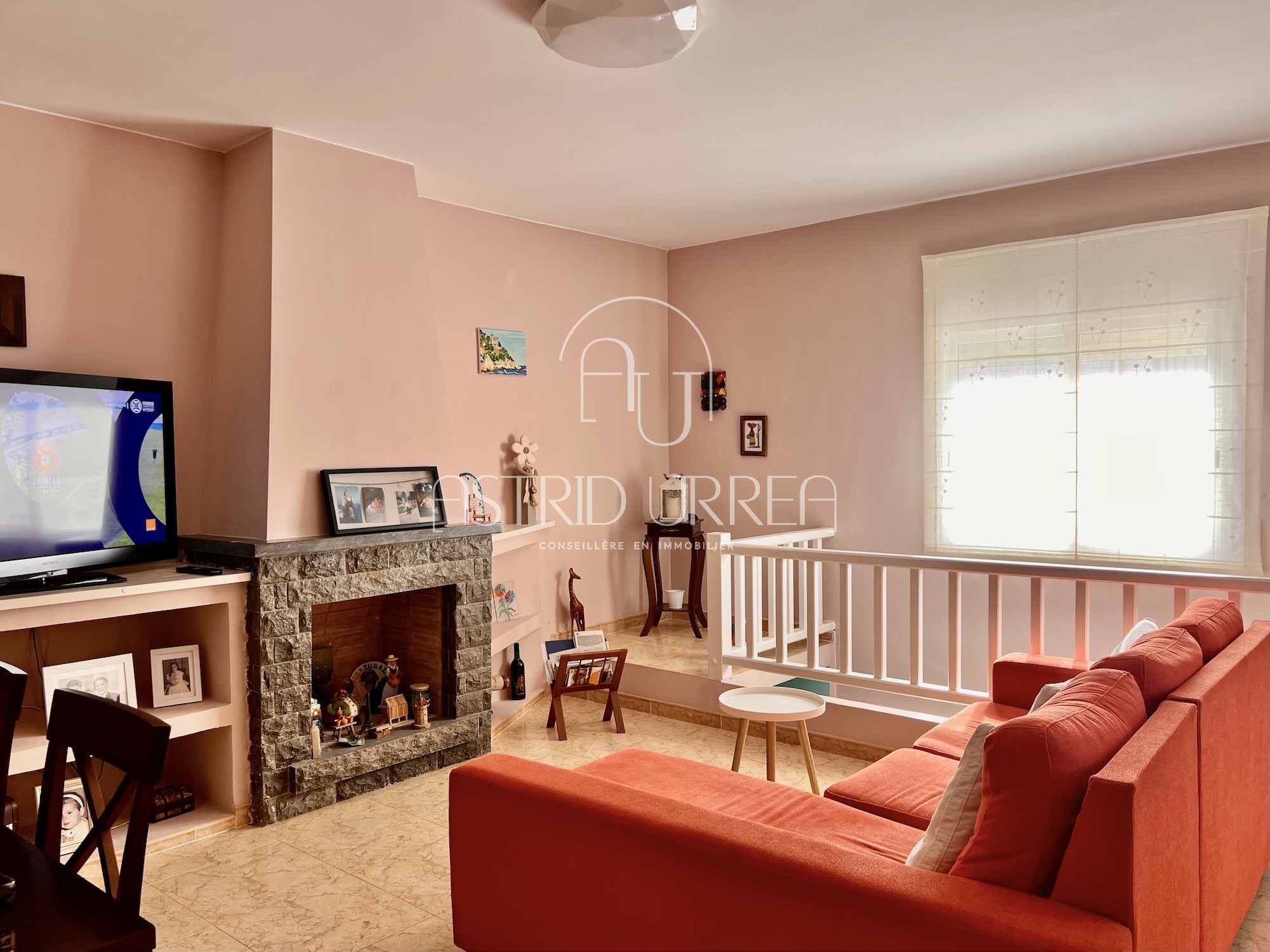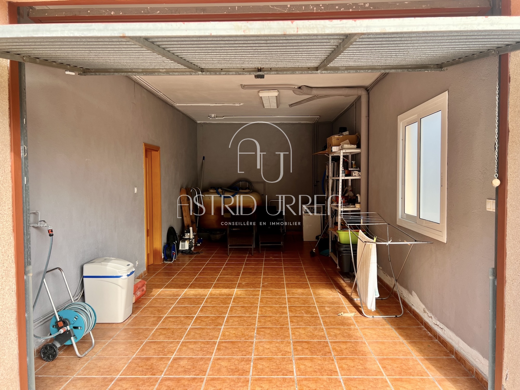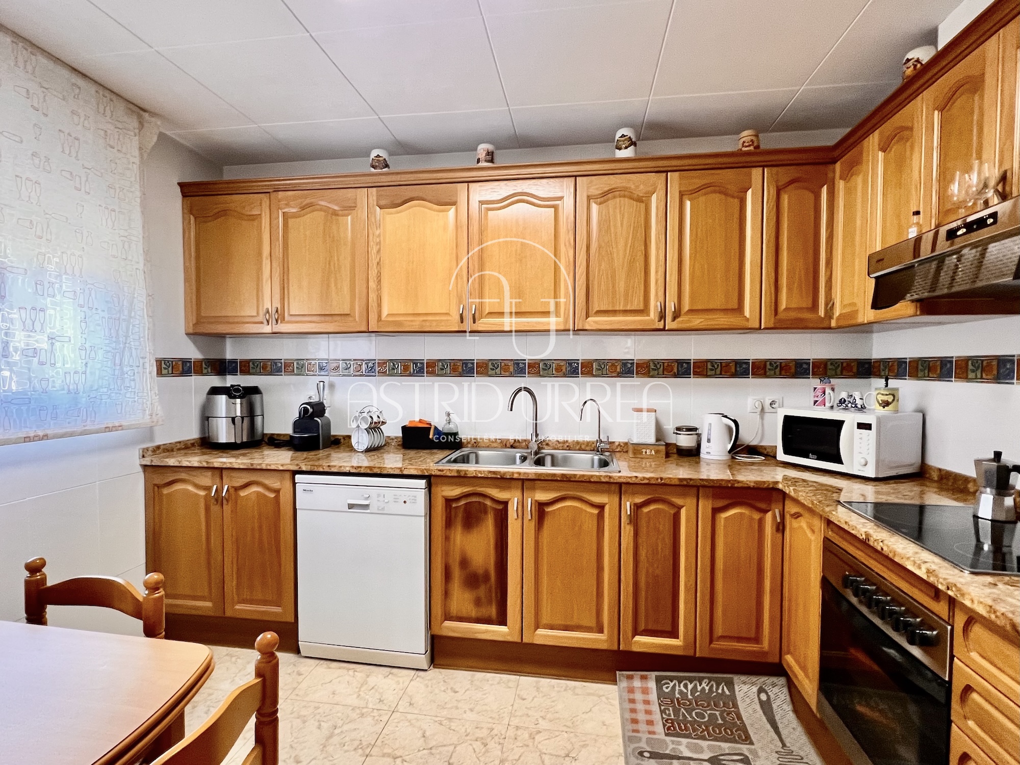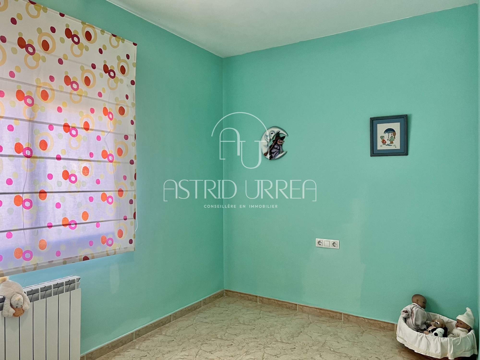 The single-story house, with direct access from the street, features a large, separate kitchen, a bright living room opening onto the terraces and barbecue area, and a sleeping area with three bedrooms and a bathroom. The spacious master bedroom has a large built-in wardrobe with sliding doors and access to a terrace offering panoramic views of the hills.